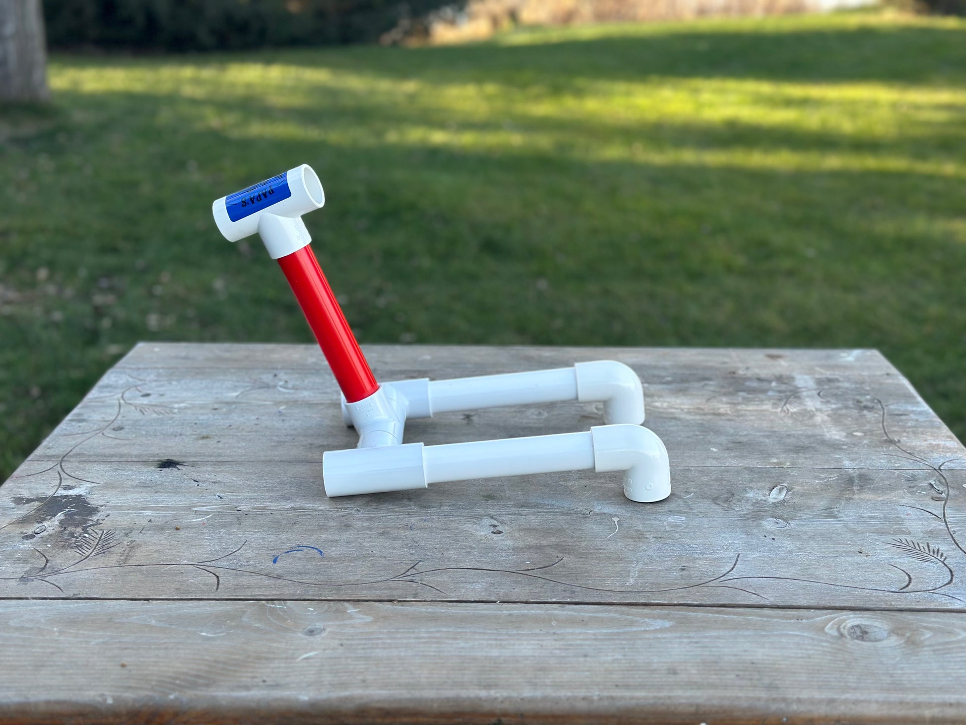 made with Furniture Grade PVC for the legs & upright and Plumbing Grade PVC for the fittings (tees & elbows).
